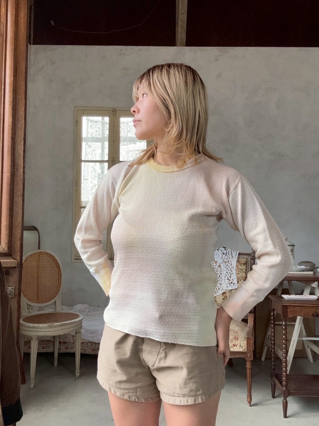 vintageの白いthermalを