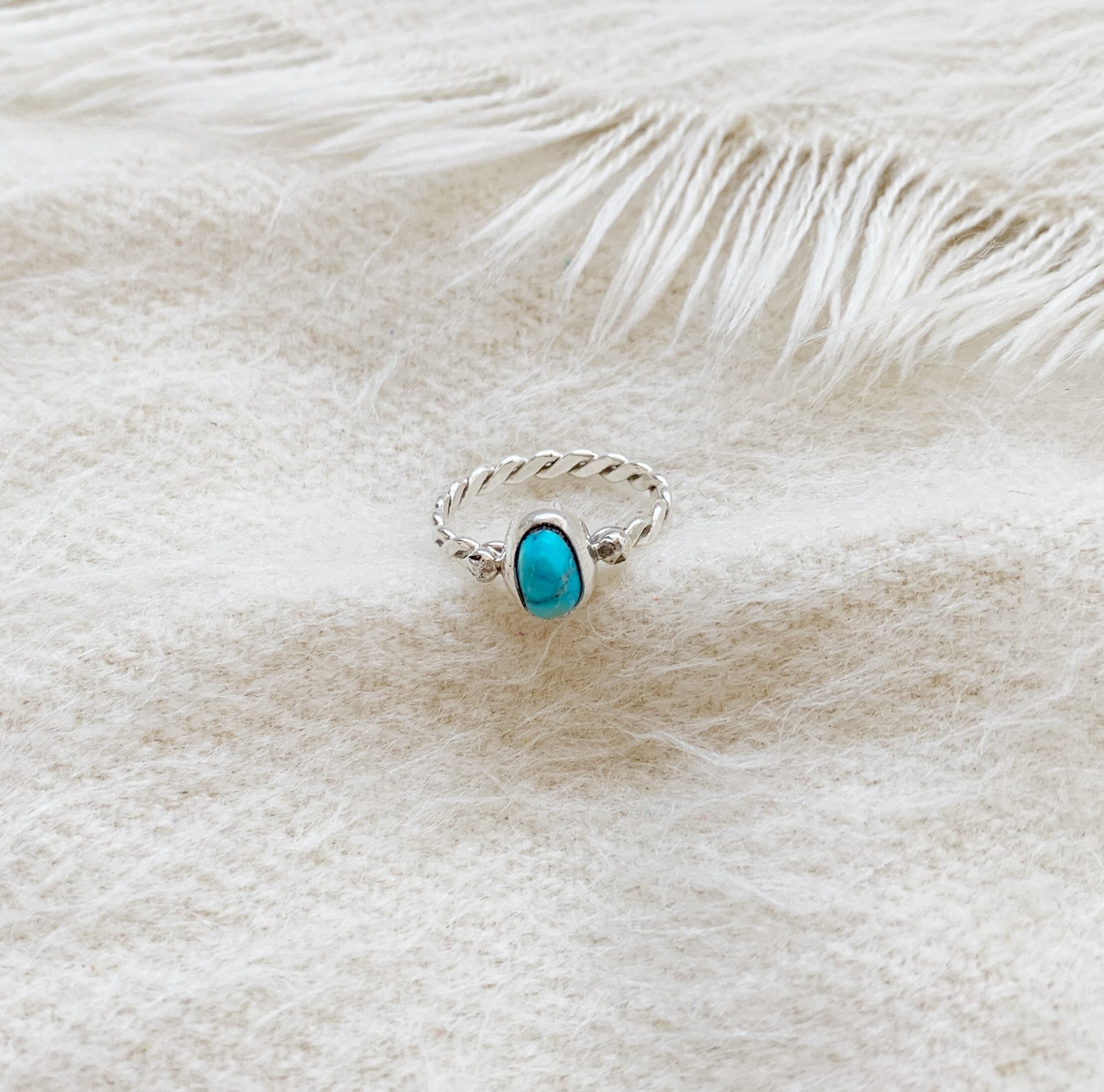 小ぶりのオーバル型ターコイズのリング