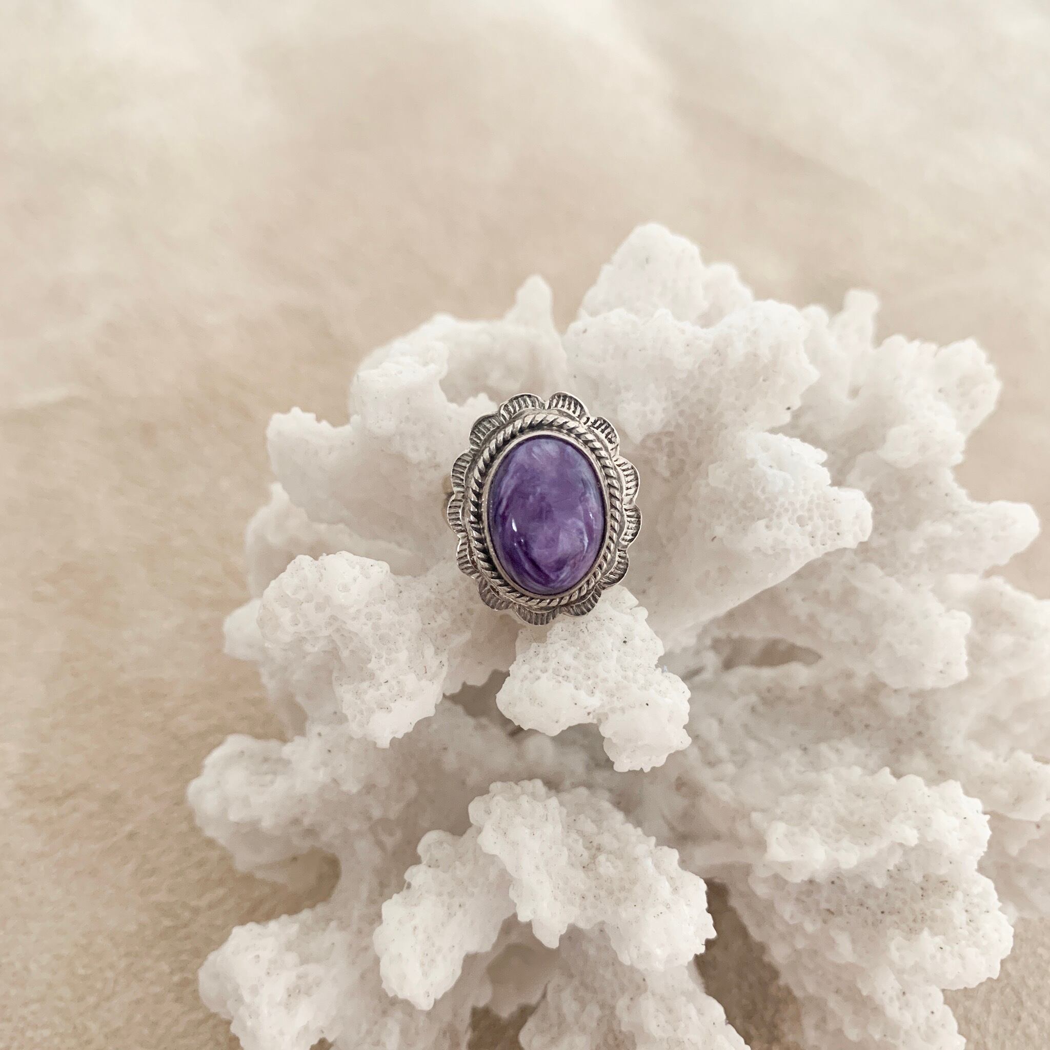 アメジストのお花モチーフのリング