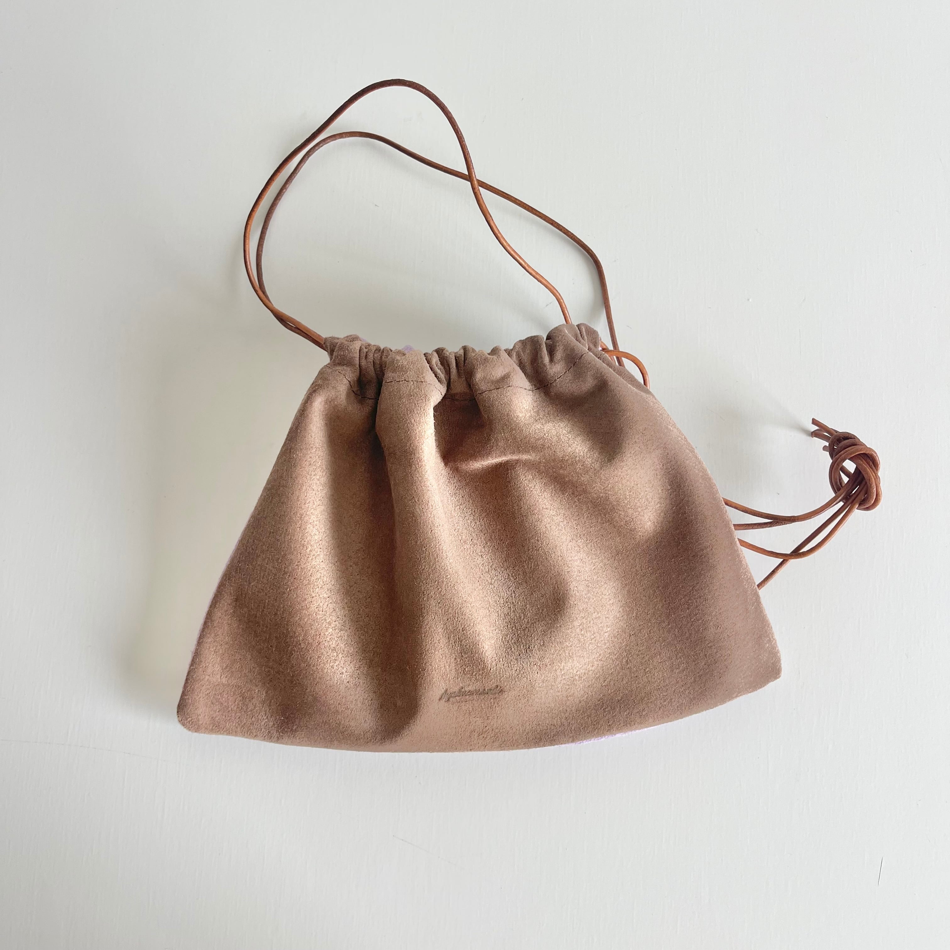 シンプルなpigレザーの巾着バック。