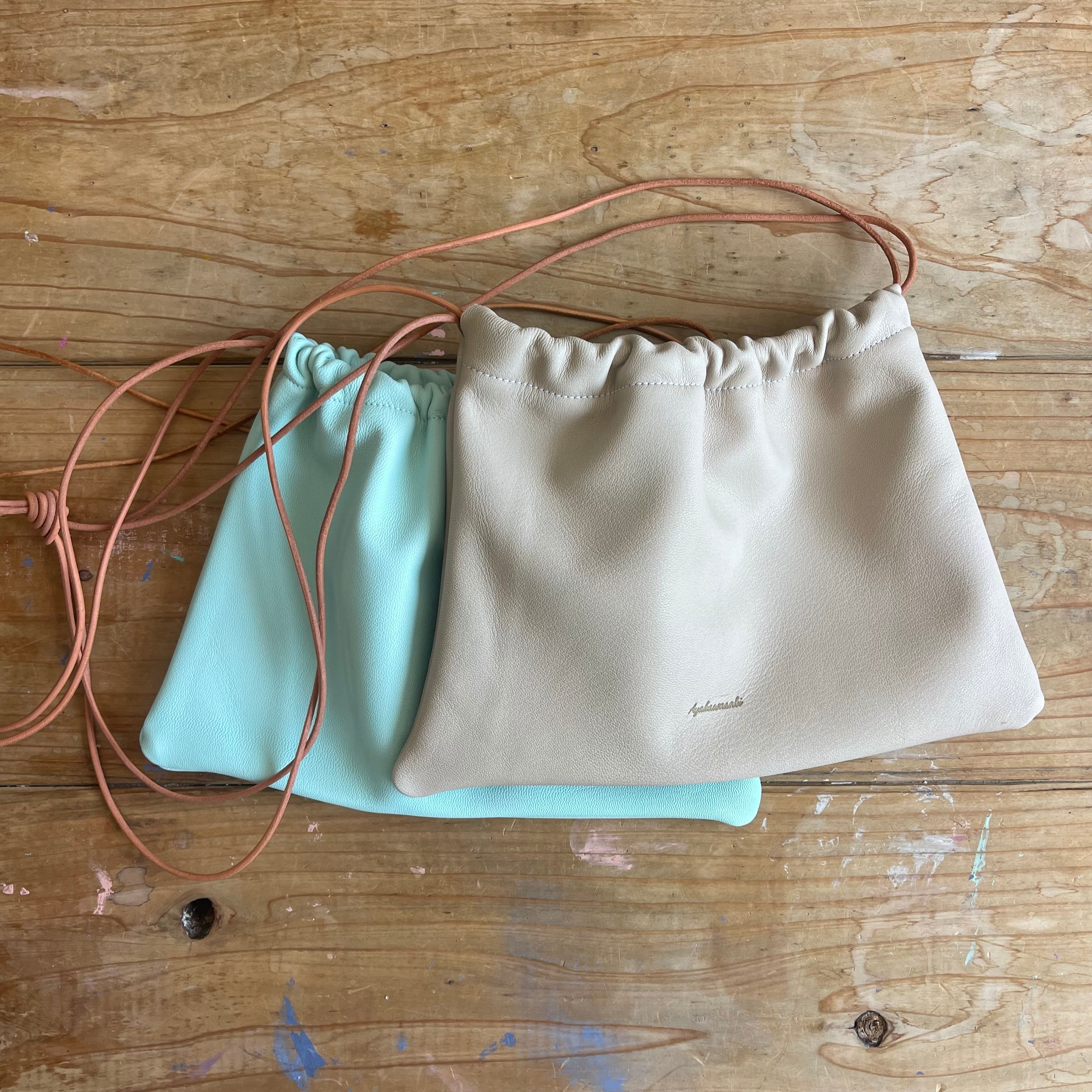 シンプルなゴートレザーの巾着バック。